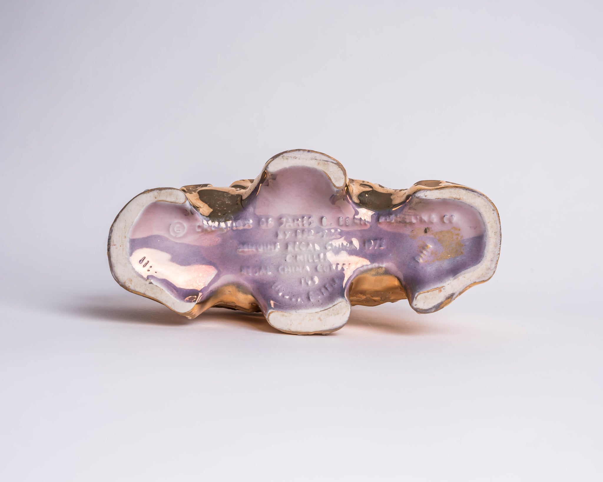 EXCELLENT CONDITION WITH NO CHIPS, CRACKS OR REPAIRS. THE FRONT LEGS HAS SOME GOLD MISSING, THIS IS A FIRING DEFECT AND NOT PEELING OR WEAR.