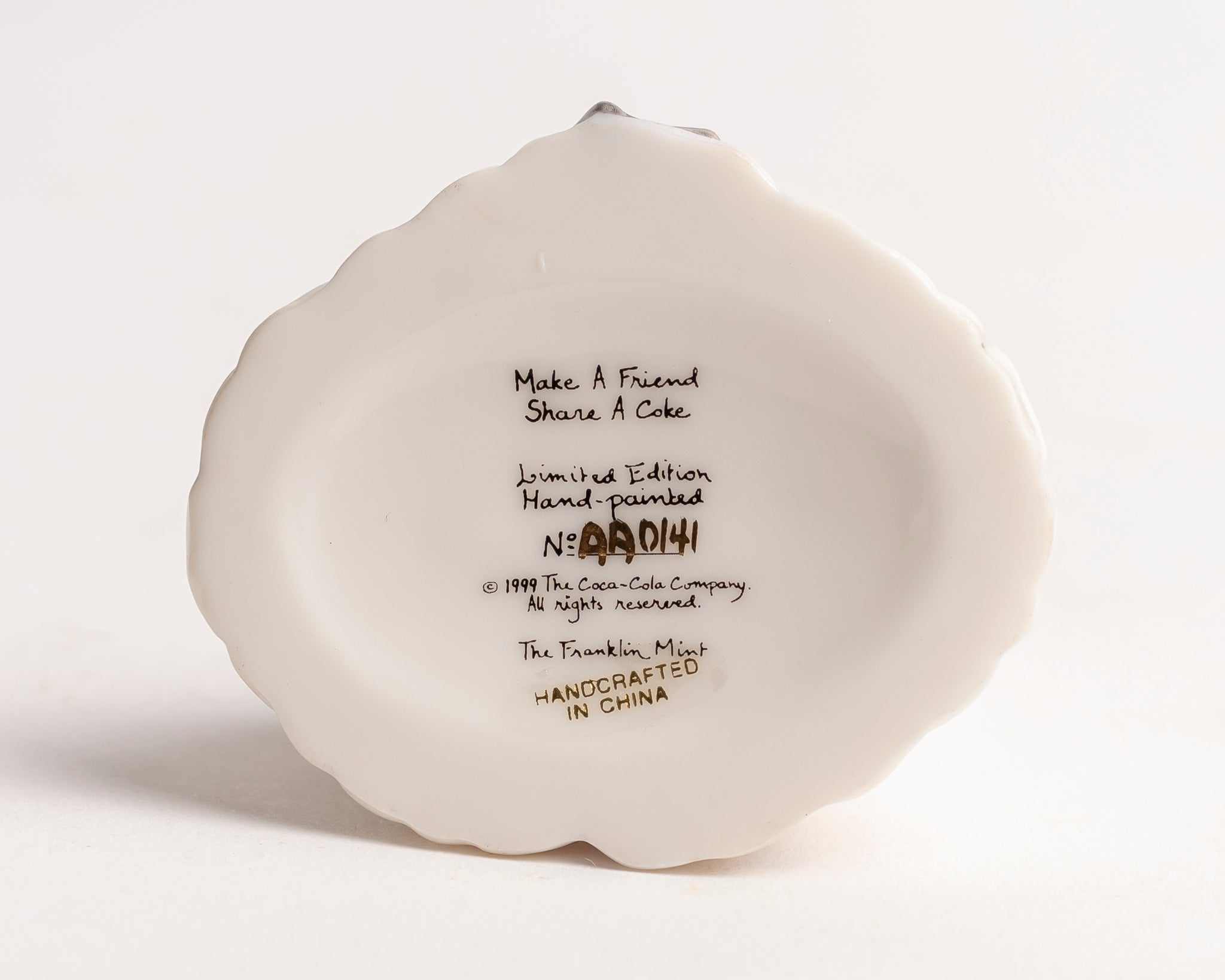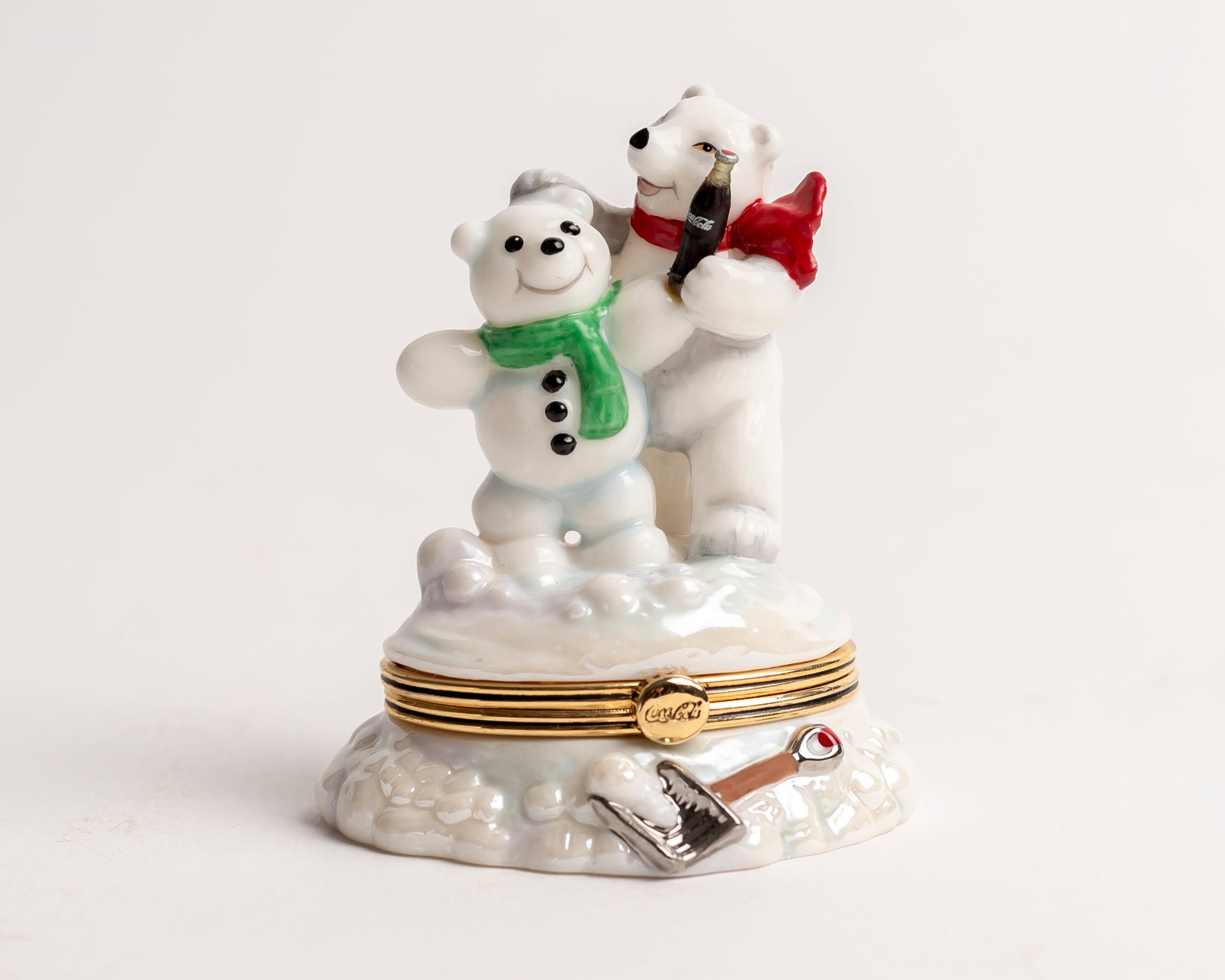 Limited Edition 1999 hand painted Coca-Cola Polar Bear keepsake box. This is from the "Make a Friend, Share a Coke" series. Made of porcelain. Produced by The Franklin Mint. Number AA0141.