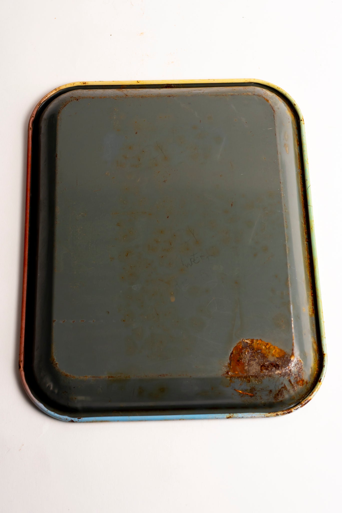 Condition is fair. Surprisingly, there are no scratches, but it does have rust patches across the front and a corner rust spot on the back.